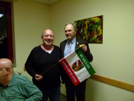 Die feierliche Übergabe einer neuen Startfahne für den Verein am Ende der Veranstaltung war eine sehr gelungene Überraschung von Landrat Andreas Heller. Die Fahne trägt auf der einen Seite das gestickte Wappen des Landkreises und auf der anderen Seite dass der Stadt Hermsdorf.